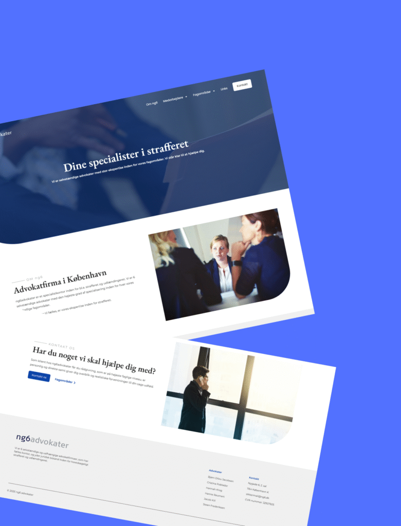 ng6 advokater stod med en gammel hjemmeside, der trængte til et løft. De bruger ikke markedsføring, så opgaven var egentlig ret klar: et digitalt visitkort, der præsenterer dem ordentligt — også for dem, der ikke taler dansk. Derfor byggede jeg siden i både dansk og engelsk.